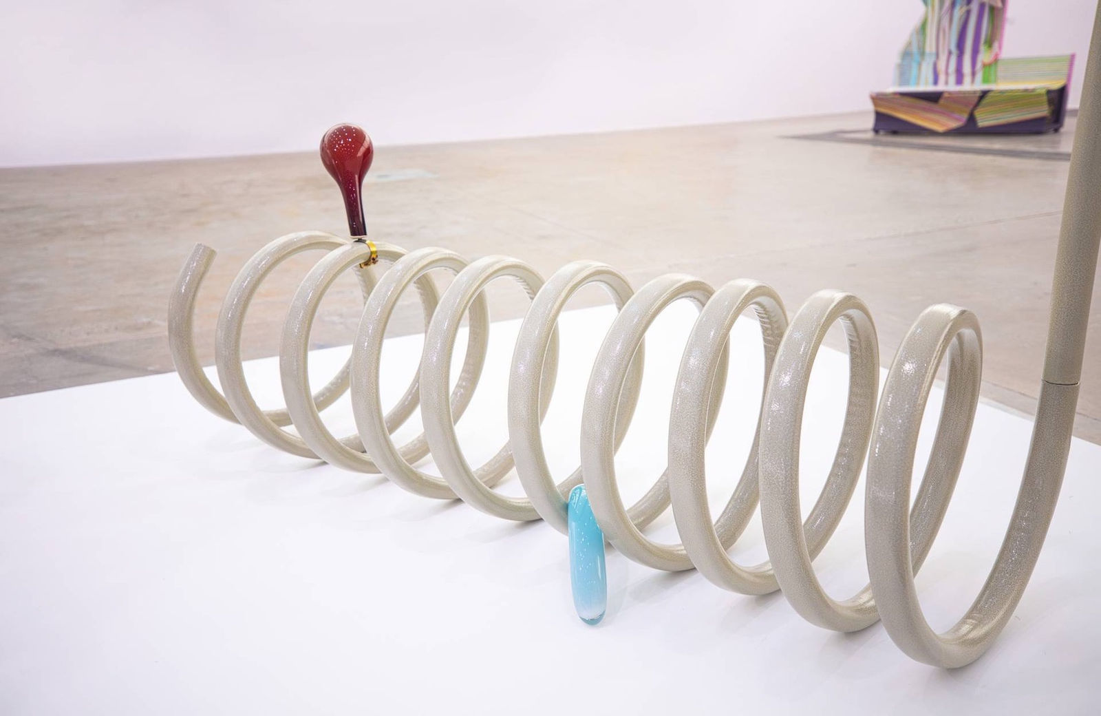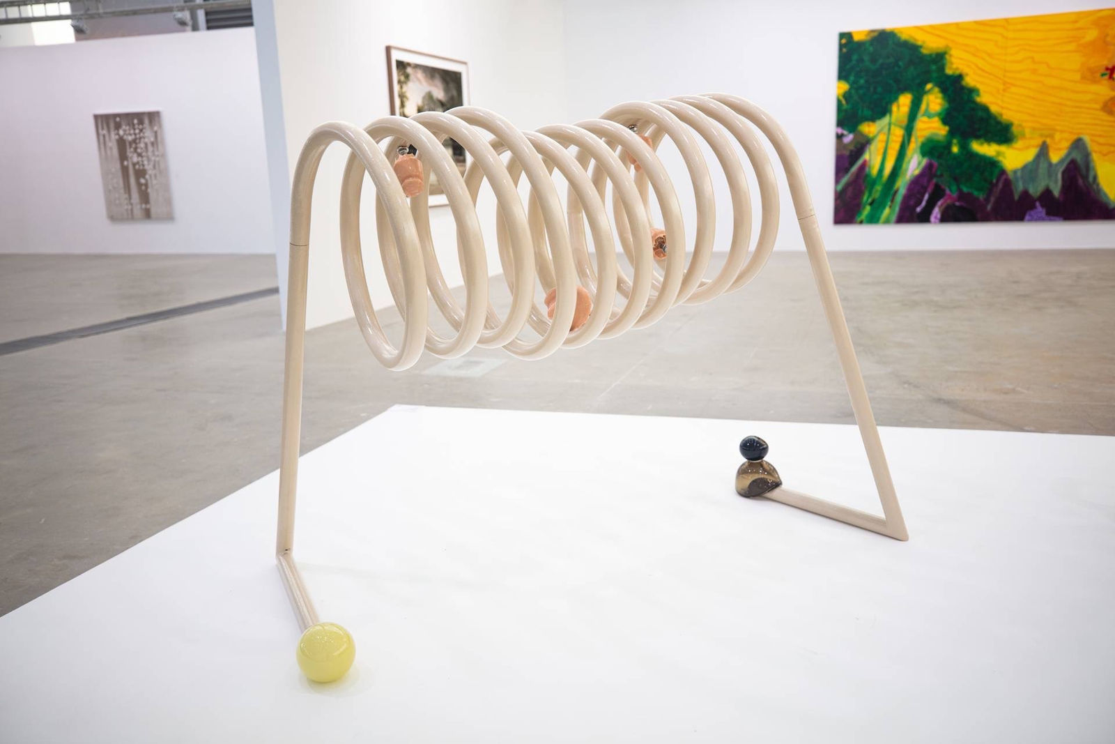 BANK is honored to present artist Yibei Zhang's work in Westbund Art & Design 2020 xiàn chăng section. “Body and tail of snake" is borrowed from Aesop's fable wherein the snake's tail quarrels with its head, insisting that he should lead the way. However, as the tail has no eyes nor brains, it eventually leads the body over a cliff to its death. The moral of this story of conflict and tragedy is to know one’s place in the world. The artist expresses this visually in her coiled sculptures whereby the main core of the spring in its most extended posture balances power. Glass bubbles and high-voltage resistors placed along the main spine, both eerily figurative and ornamental, expose inherent contradictions with a seemingly peaceful aura.