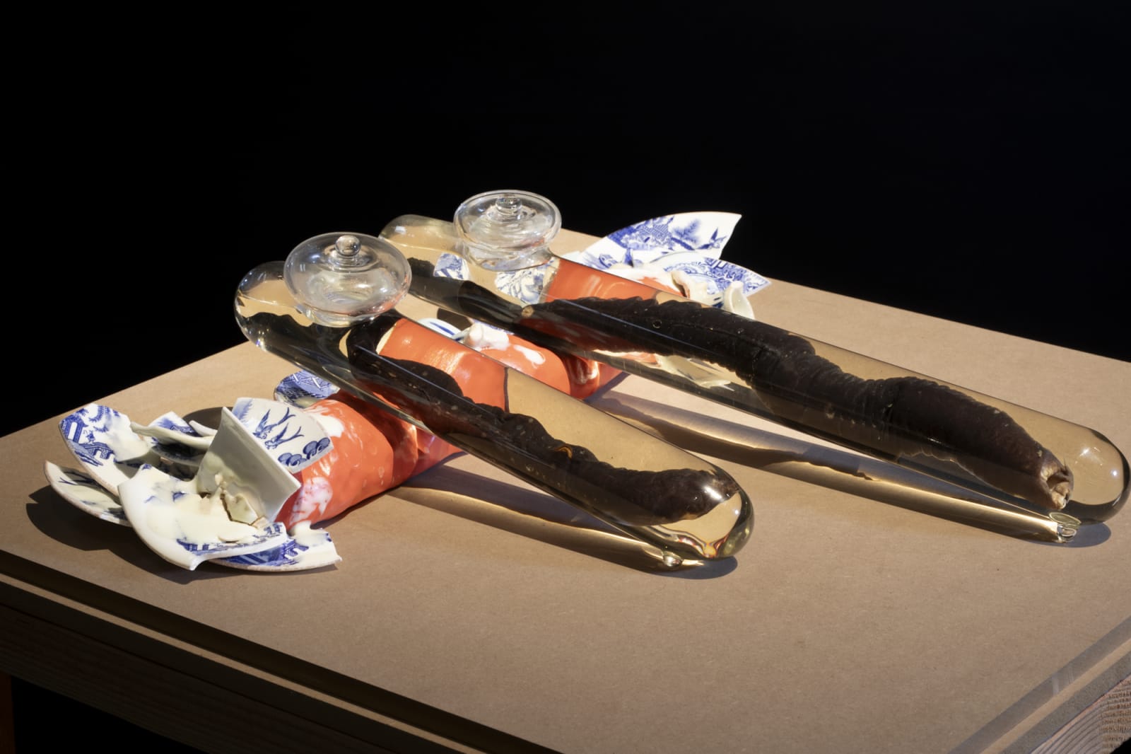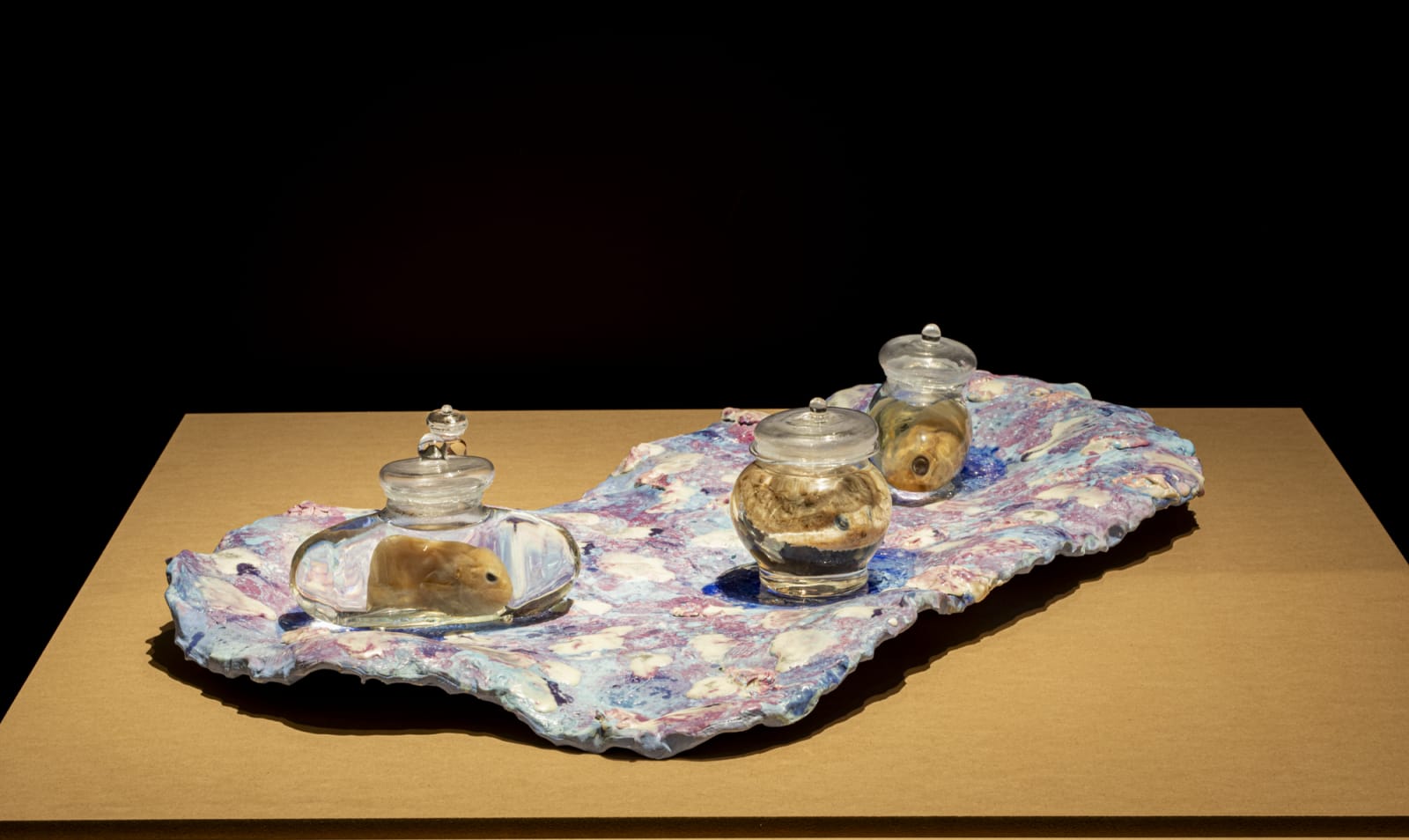 2023年,张怡与凯利前往牙买加金斯顿观察联合国国际海底管理局(ISA)的会议——该机构正监管着深海采矿活动。随着绿色与数字技术扩张,国家和企业纷纷将目光投向海底资源。艺术家拍摄的视频揭示出,国际经济程序如何将自然世界简化为金融要素,忽视海洋支持的丰富生命。他们的作品将ISA近期行动置于殖民与掠夺的历史脉络中,呼应英属牙买加的糖与奴隶贸易,以及早期海洋学和自然科学的共谋。展览中,过去与当下交织:人类劳动曾渡海被剥削牟利,如今资本与权力仍在持续抽取海洋资源。