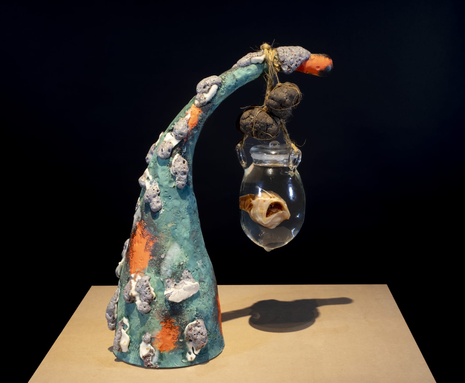 《我们的深渊亲族》也将海洋视为人类的亲属,以此质疑传统知识的局限。当ISA将挖掘出的锰结核仅视为过渡矿物原料时,艺术家却强调这些矿物历经数百万年形成,其时间远超出人类生命或技术产品的存在尺度。作品中融入了夏威夷原住民长者所吟诵的咒语,以及牙买加马隆社群鼓手的节奏,提示我们抵抗剥削的可能。最终,张怡与凯利将这场斗争的传统联系到自然生命的持久与珍贵——它既独立于人类历史浪潮,又与之紧密交织。