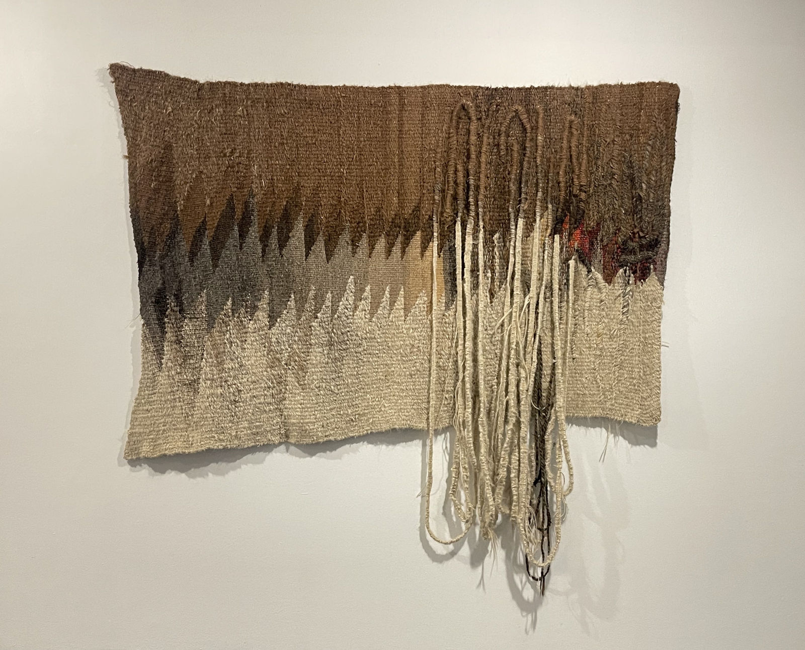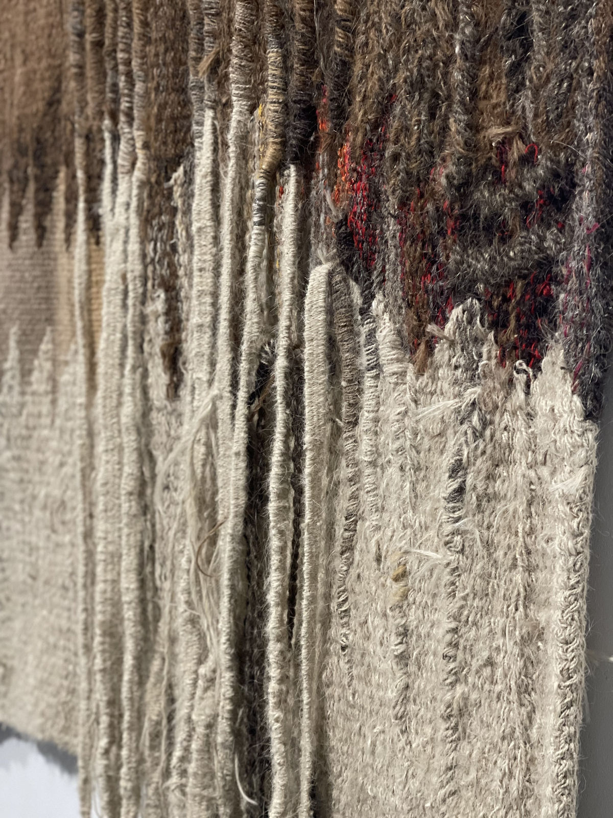 Maryn Varbanov (b.1932, Oriahovo, Bulgaria - d.1989, Beijing, China) enrolled at the Sofia Academy of Fine Arts In 1951.During an exchange with the Chinese Academy of Fine Arts in Beijing in 1956, Varbanov met and married Song Huai-Kuei, with whom he worked regularly. Back in Sofia, he combined Chinese, Hellenic, Slavic, and Ottoman weaving techniques with modern methods and was influenced by Jean Lurçat. Between 1975 and 1981, he resided at the Cité internationale des arts, experimenting with "soft sculptures". In 1980 he founded the Modern Tapestry Research Institute in Zhejiang Academy of Fine Arts (now China Academy of Art).His tapestry Composition couleurs naturelles is distinguished by the threads that emerge from the stitch creating an effect of volume. Over and above its visual qualities, in the context of the exhibition, for the curators it evokes Varbanov's personal history and a tension between individual trajectories and rigid political structures. It was made in 1977 and probably created during Maryn Varbanov's residency at the Cité internationale des arts, where it was acquired by the Centre national des arts plastiques (Cnap).