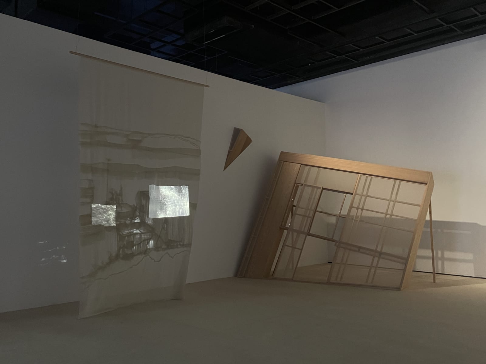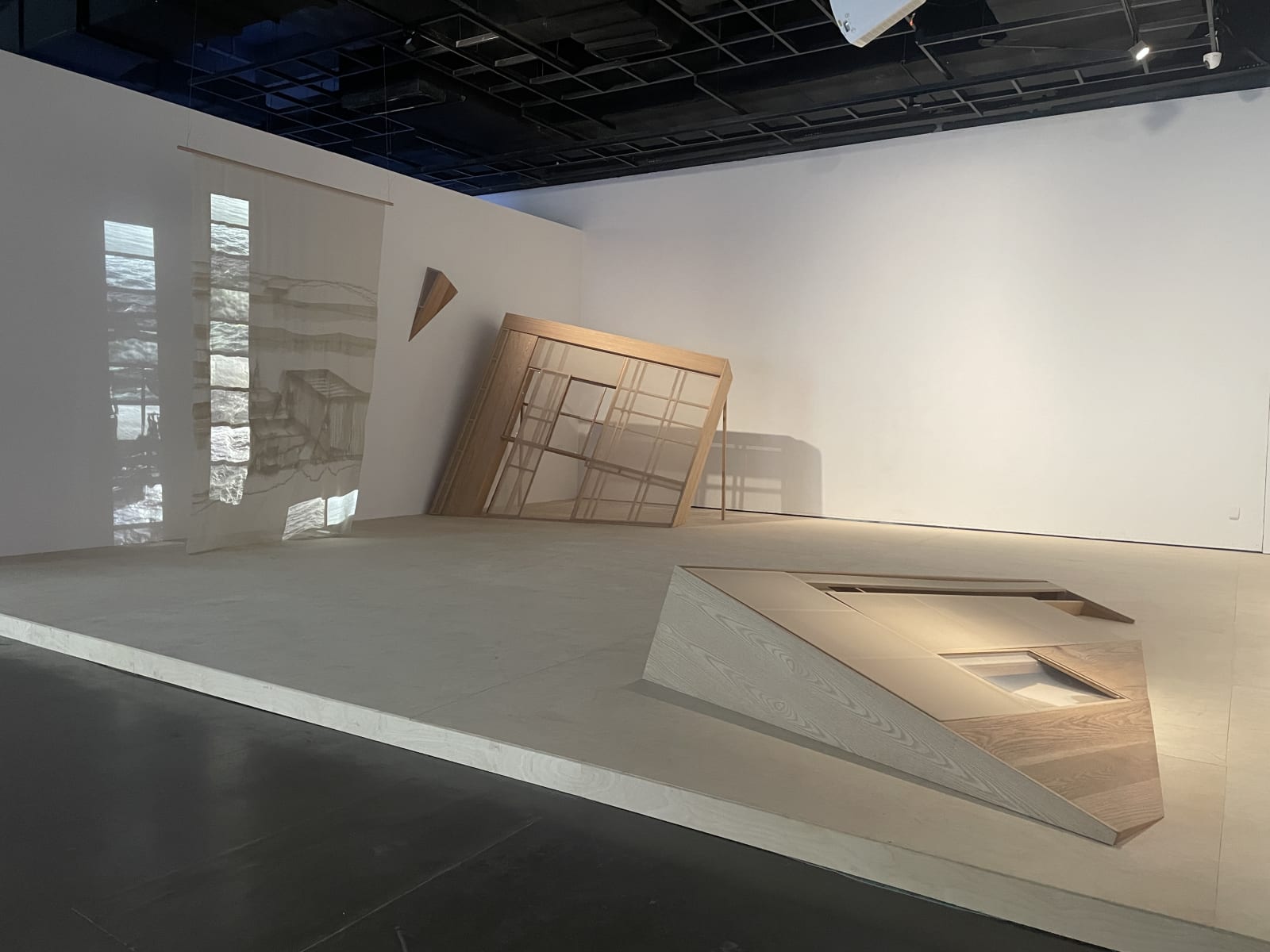 The works of Soft Window Series metaphorize the intensifying extreme weather under global warming through window forms pressurized by strong winds—wrenched askew and partially collapsed below the horizon. Quoting the artist’s residency diary: “October 16th, 15 gale force winds still blow. Many thanks to this wood house, secured tightly by the wire rope. It's really good to have you these days.” The shelter of the wooden house is regarded as another layer of clothing, reconsidering the meaning of refuge within an oppressive natural environment. Change occurs like the slow intrusion of dust—not imminent, yet continuously unfolding.